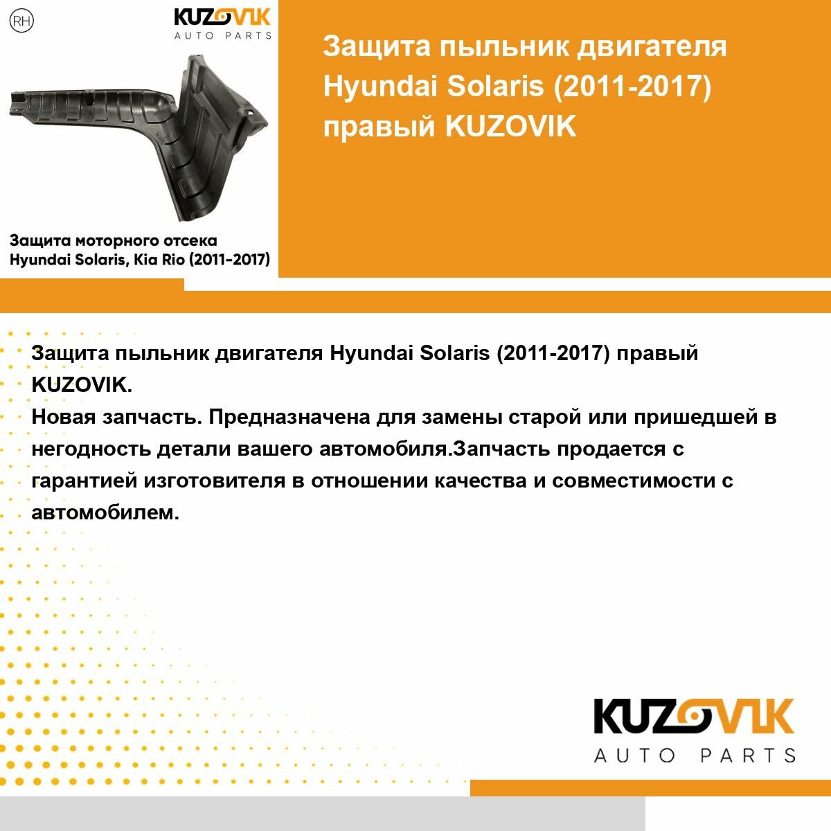 Отзывы на Защита пыльник двигателя Hyundai Solaris Хендай Солярис, Kia Rio Киа Рио (2011-2017) правый