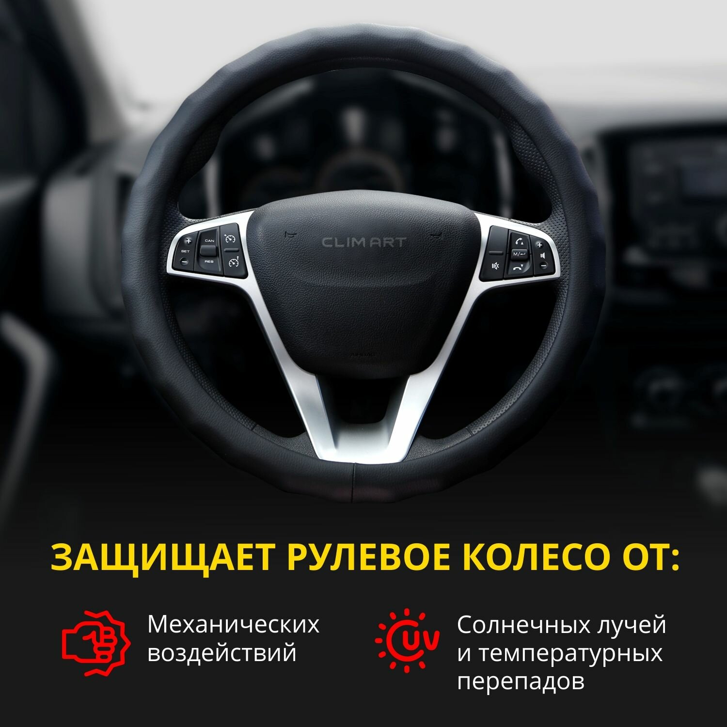 Оплетка модельная CLIM ART для Lada Vesta, волнистый обод, цвет черный