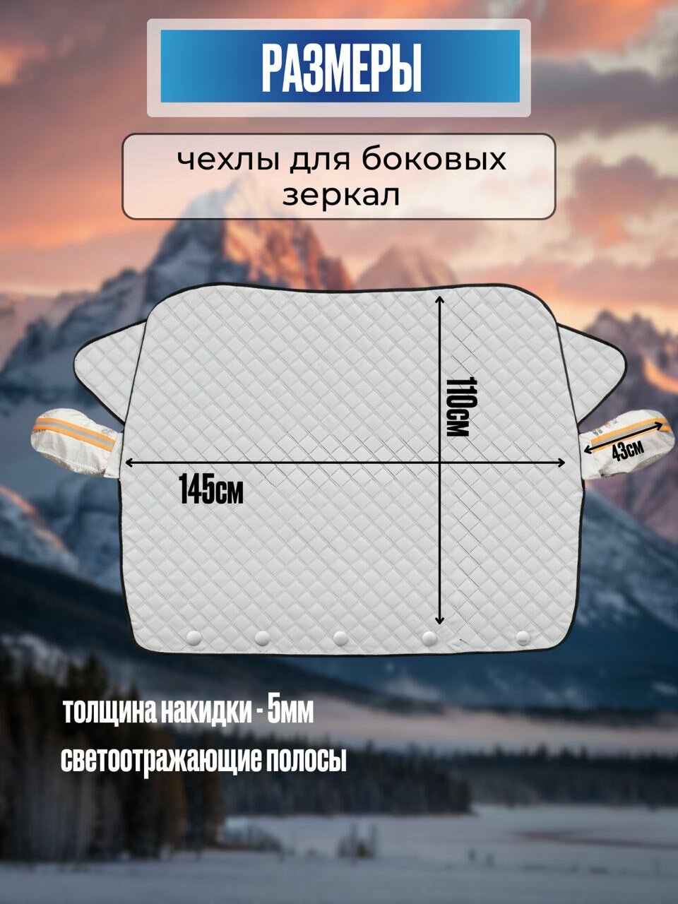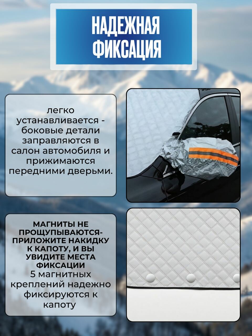 Магнитная защитная накидка на лобовое стекло автомобиля / Всесезонный чехол на стекло машины С ушами для боковых зеркал 145х110 см информация: