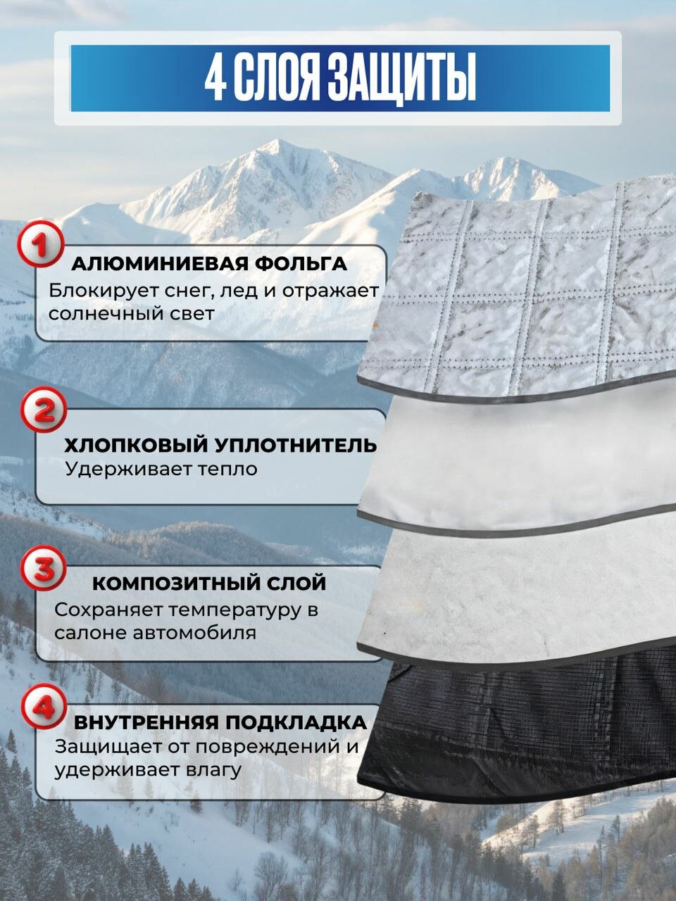 10 цен на Магнитная защитная накидка на лобовое стекло автомобиля / Всесезонный чехол на стекло машины С ушами для боковых зеркал 145х110 см