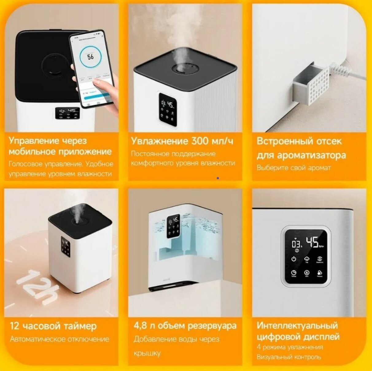 | Дополнительная информация | 4 режима работы: режим поддержания заданного уровня влажности в диапазоне от 30% до 80%, автоматический, режим сна и детский режим. |
