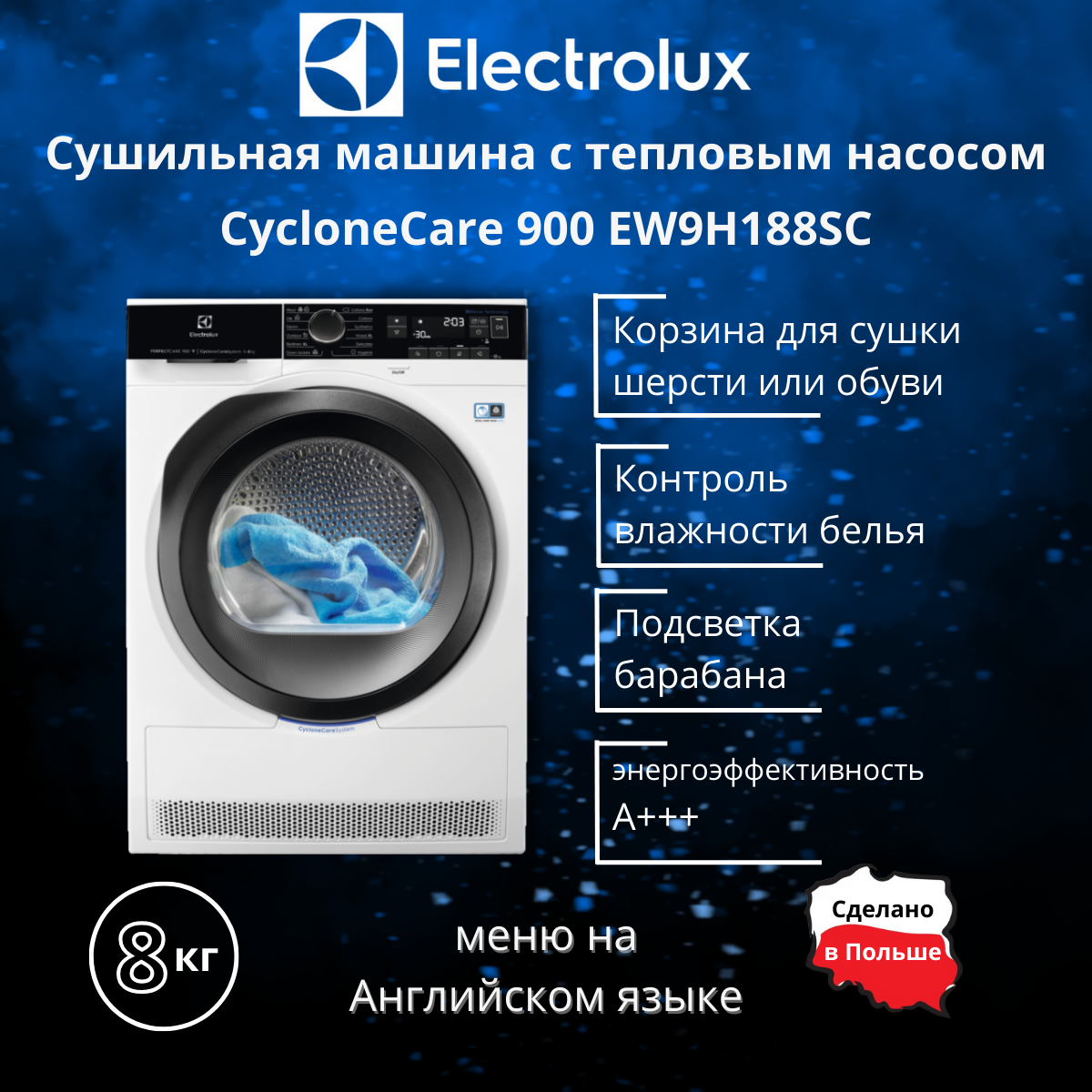 10 цен на Сушильная машина Electrolux EW9H188SC с тепловым насосом на 8 кг, корзина для сушки обуви и шерсти
