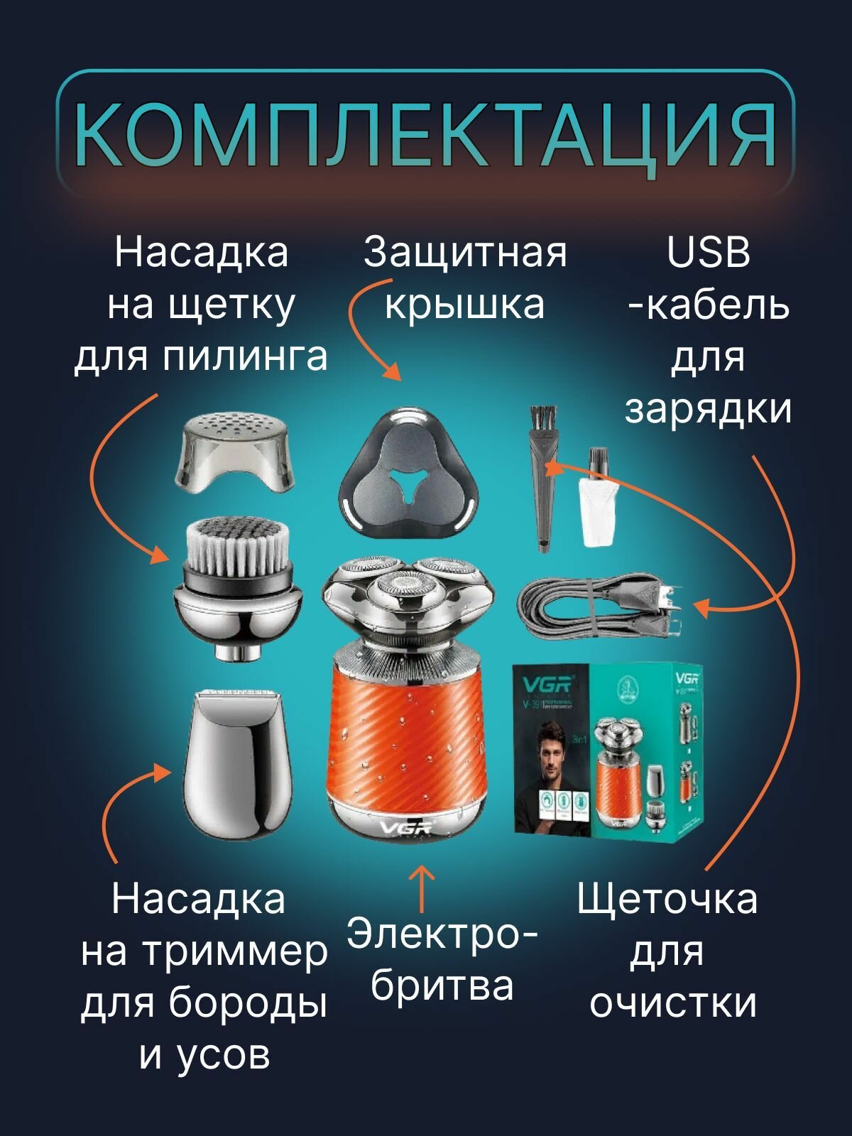10 цен на Электробритва 3в1 VGR V-391 / Бритва электрическая, Триммер для бороды и усов, оранжевый