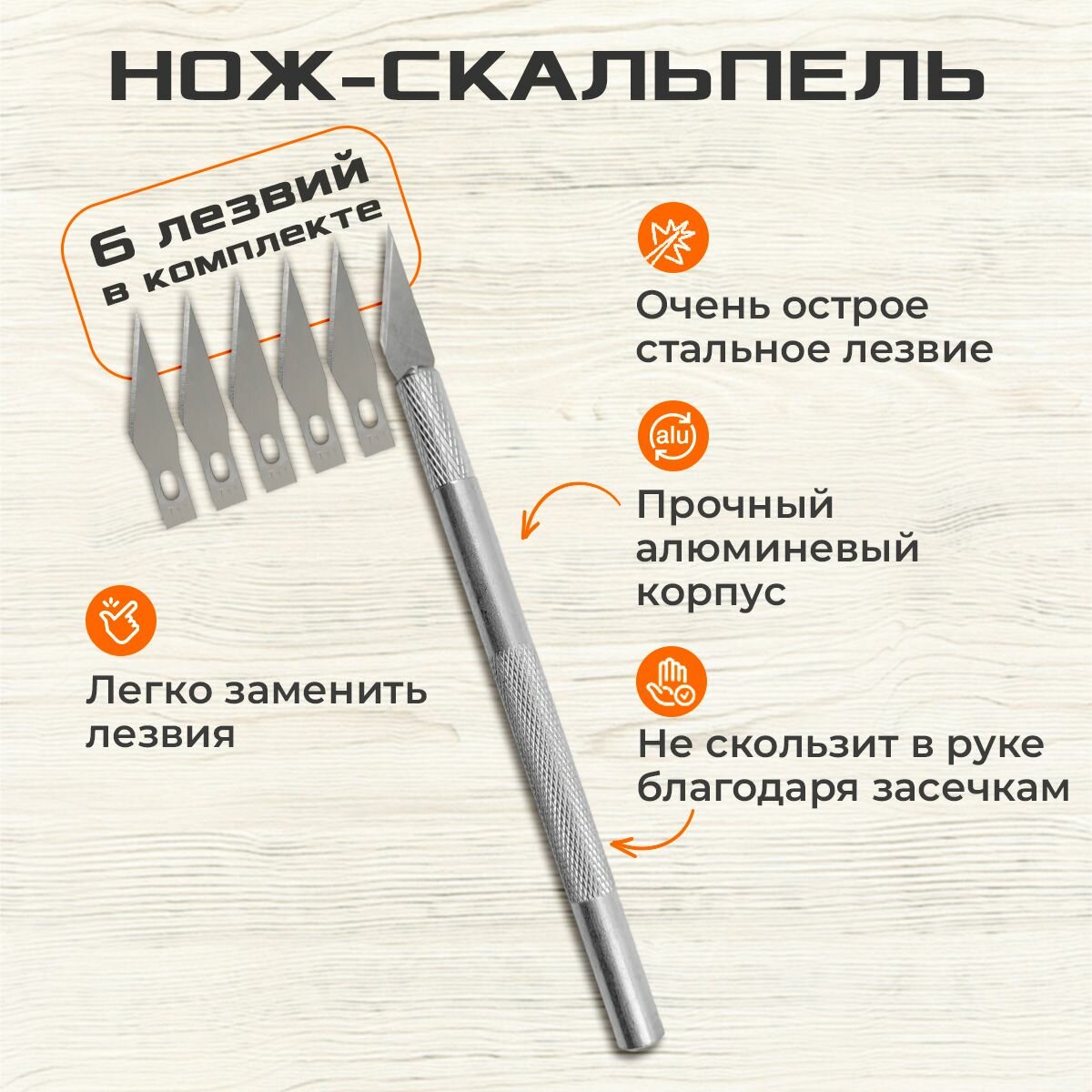 Перовой нож KNB KNB-AG6, 6 профильных лезвий, для карвинга, для резки по бумаге, тонкому пластику