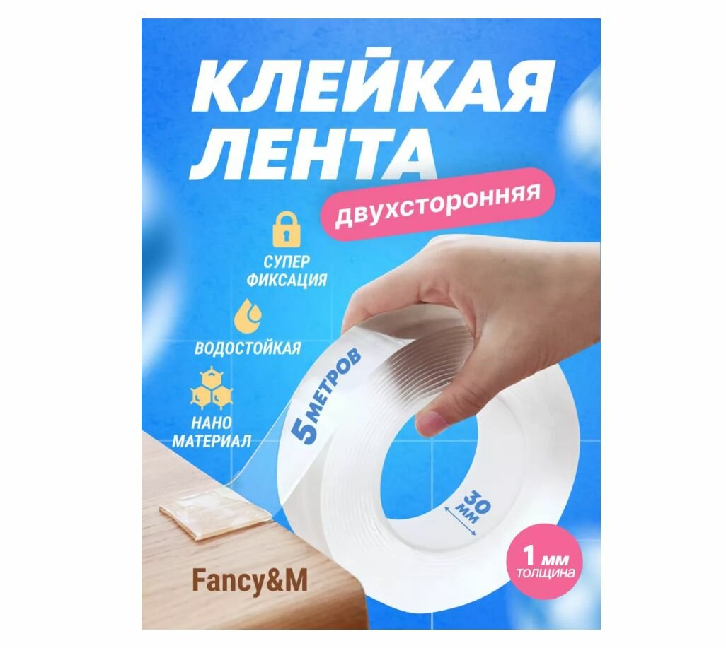 10 цен на Многоразовая прозрачная двусторонняя клейкая лента 5м. Х 3см.