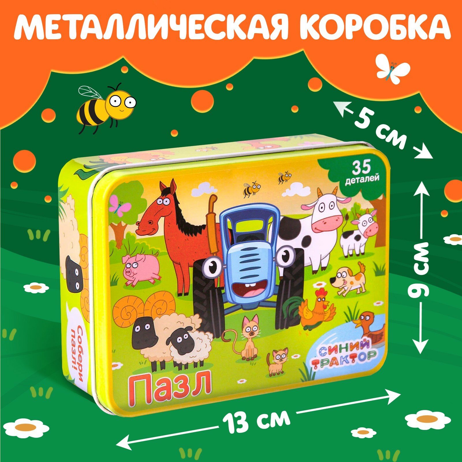 Макси-пазлы в металлической коробке "Синий трактор", 20 деталей, 10 пазлов