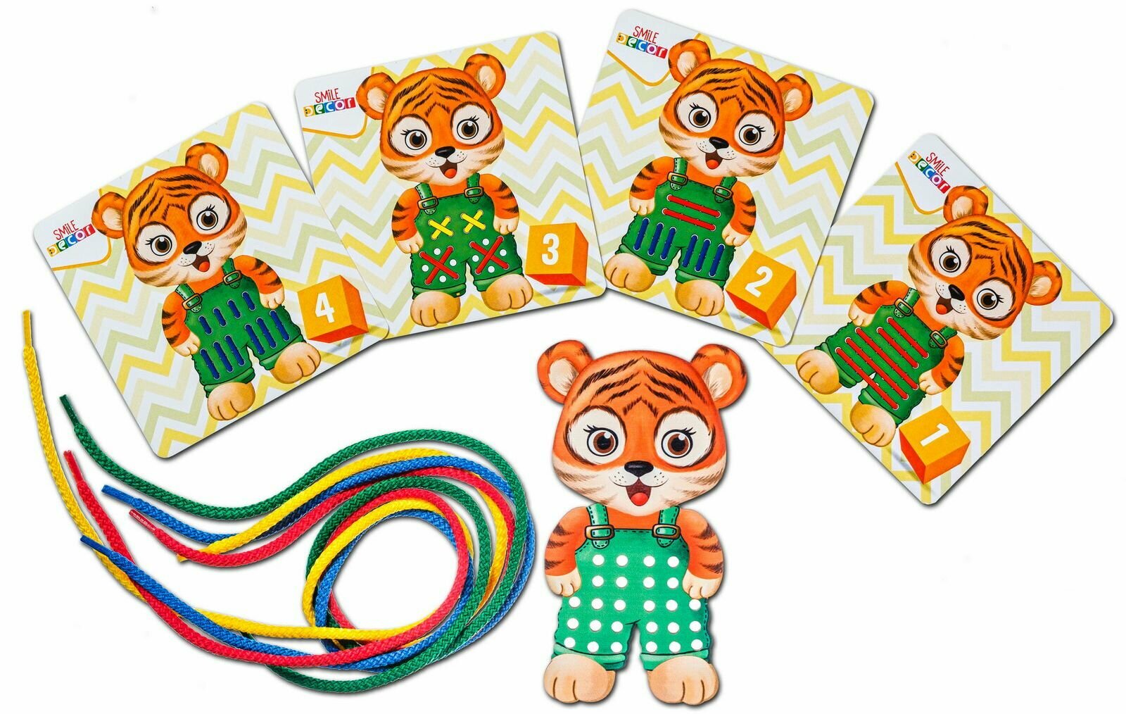 Развивающая игра-шнуровка Smile Decor "Тигренок" с шаблонами, для развития мелкой моторики и координации движений информация:
