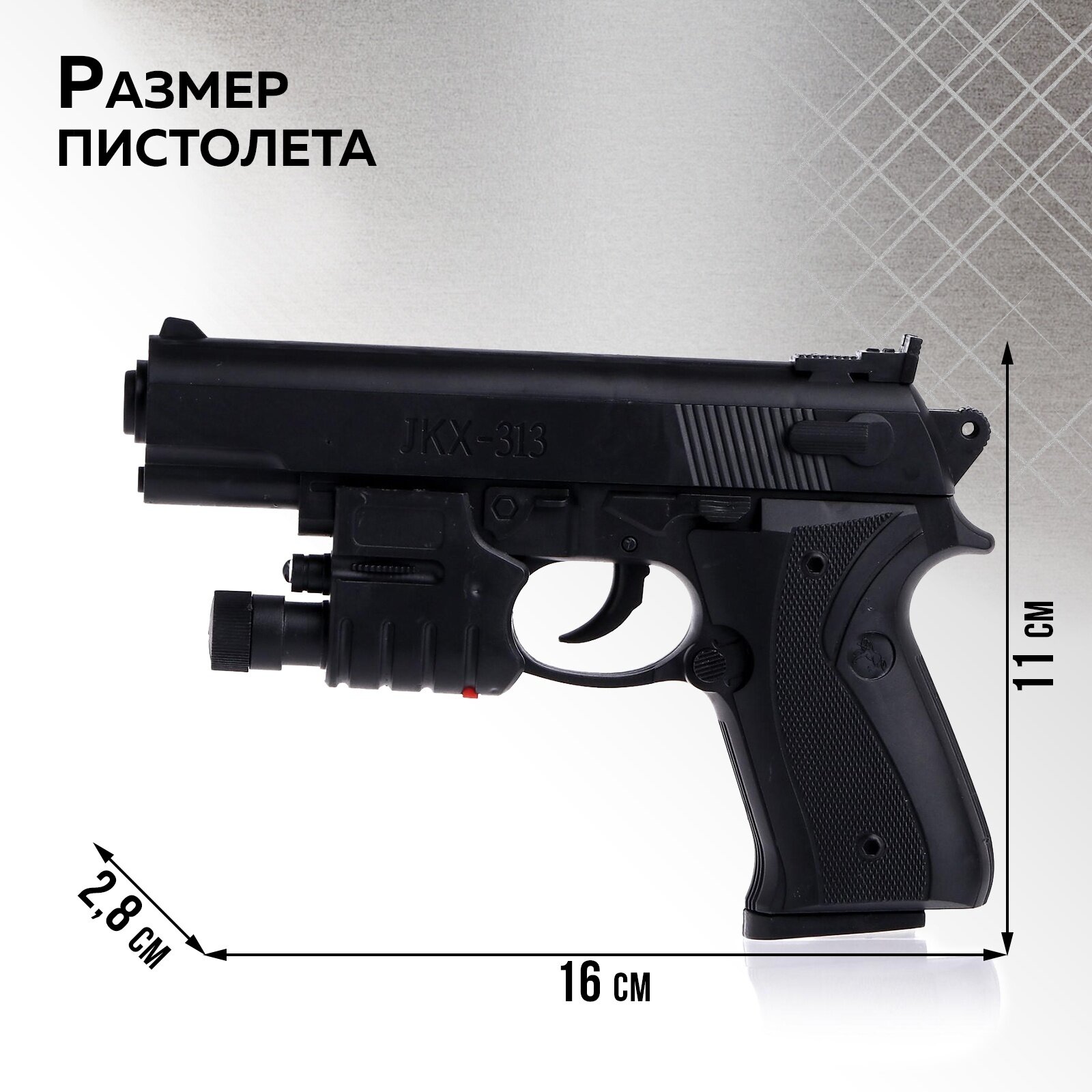 10 цен на Детское оружие Пистолет "Агент 313", стреляет пульками, 6 мм, цвет черный, лазерный прицел и фонарик