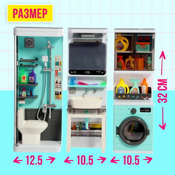Набор мебели для кукол "Ванная комната": санузел, раковина, постирочная информация: