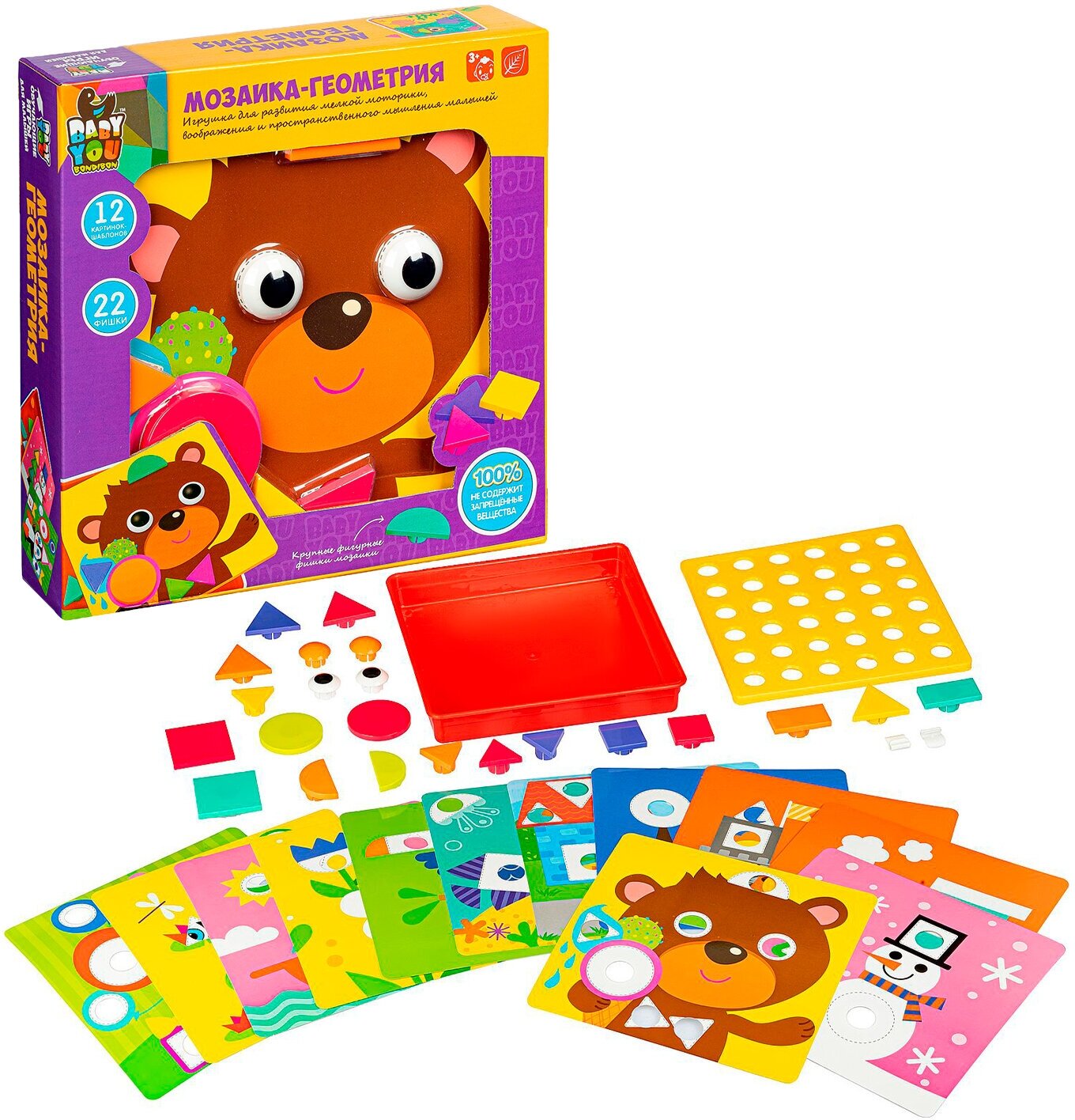 10 цен на Мозаика Bondibon Геометрия, для малышей, с картинками-шаблонами и фишками