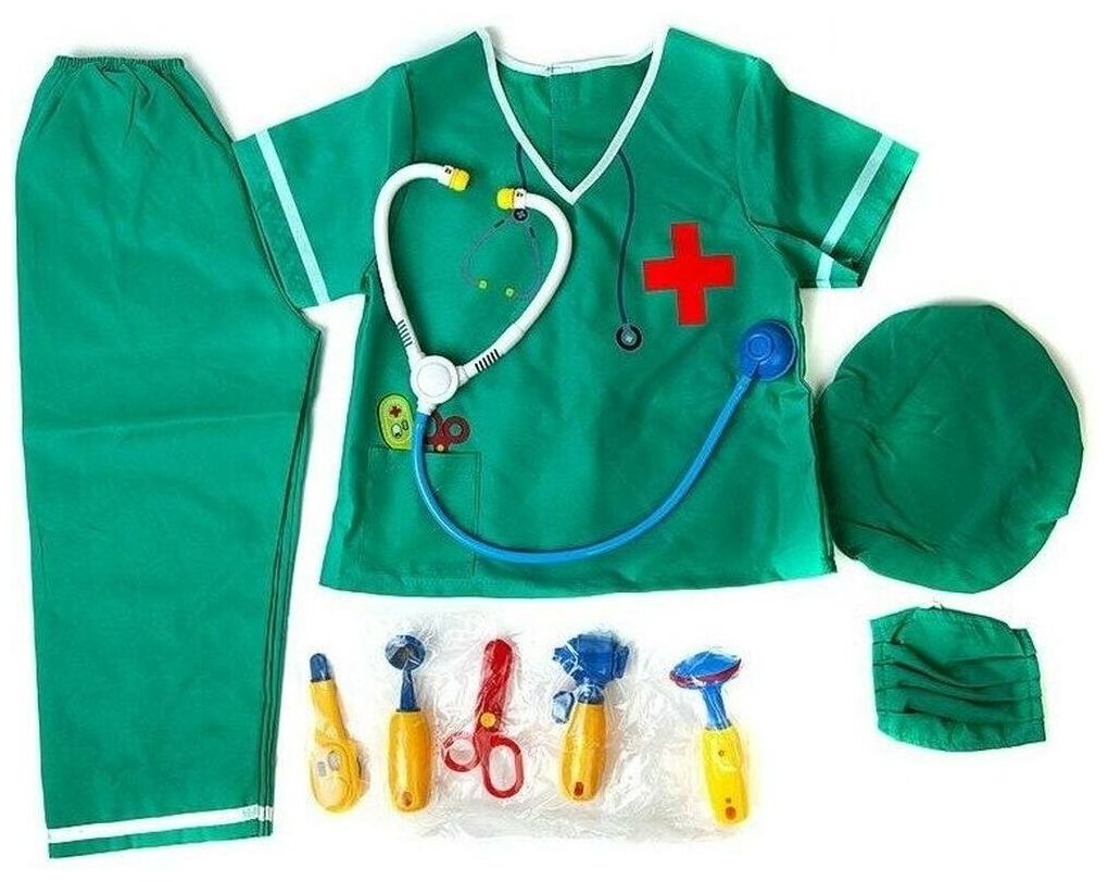 | Комплектация | - медицинский костюм (блуза и брюки); - шапочка; - маска; - стетоскоп; - стоматологическое зеркало; - отоскоп; - молоточек; - нож. |