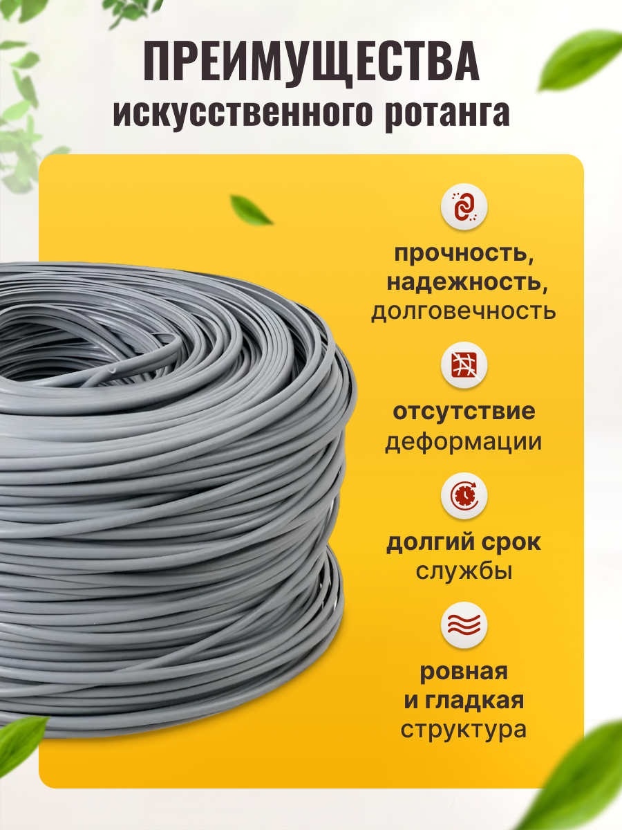 10 цен на Искусственный ротанг 100м серого цвета для плетения декоративной мебели, полиротанг