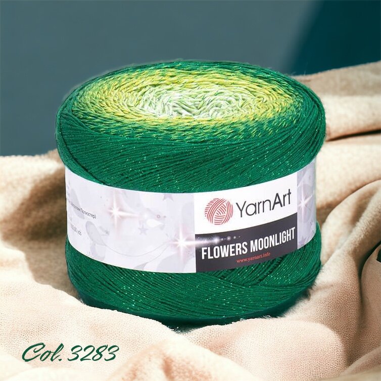 Пряжа YarnArt Flowers Moonlight зеленый-светло зеленый (3283), 53%хлопок/43%акрил/4%металлик, 1000м, 260г, 1шт