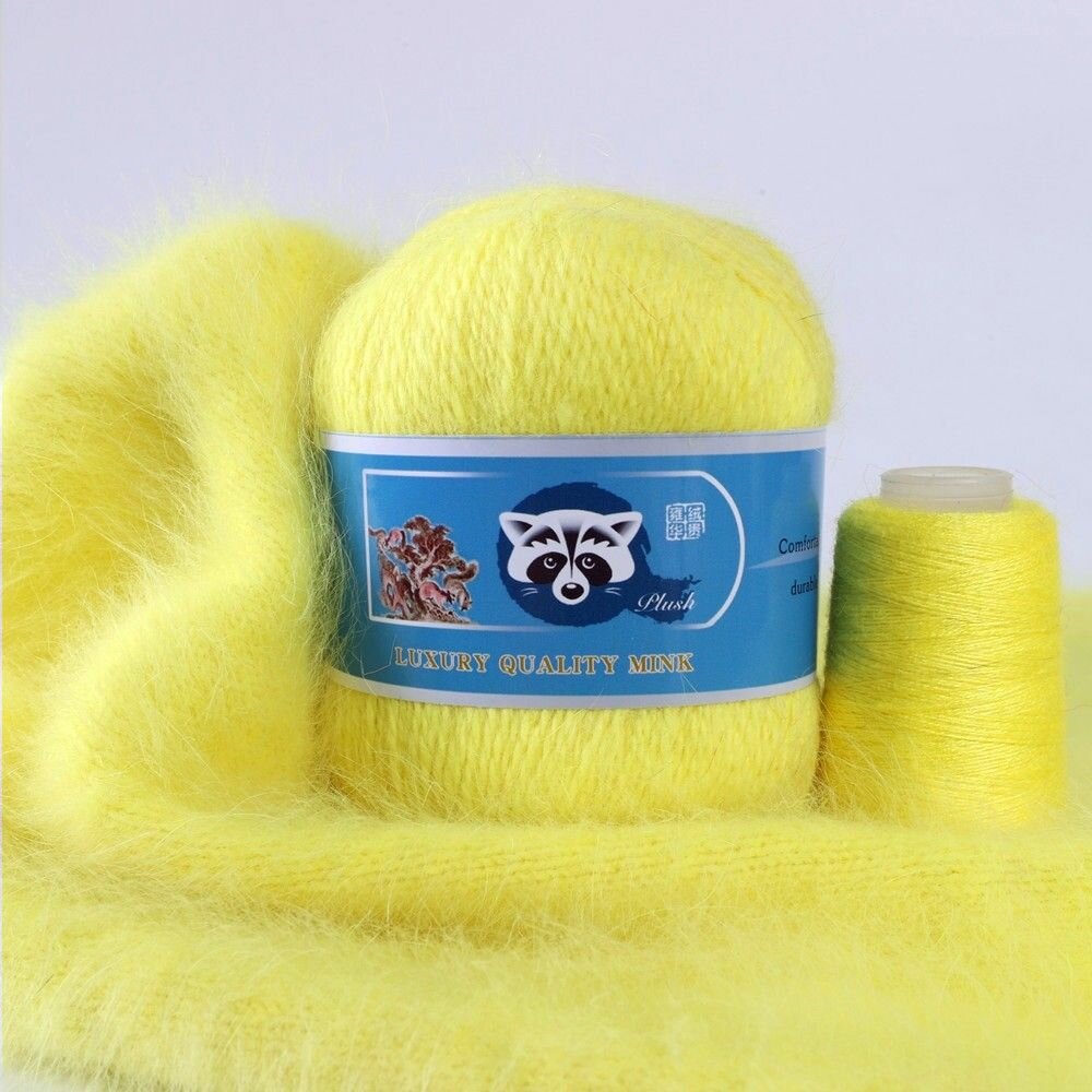 Отзывы на Пряжа Пух норки - 5 мотков 50гр/350м + 5 мотков добавочной нити, цвет 858 желтый неон , синяя этикетка