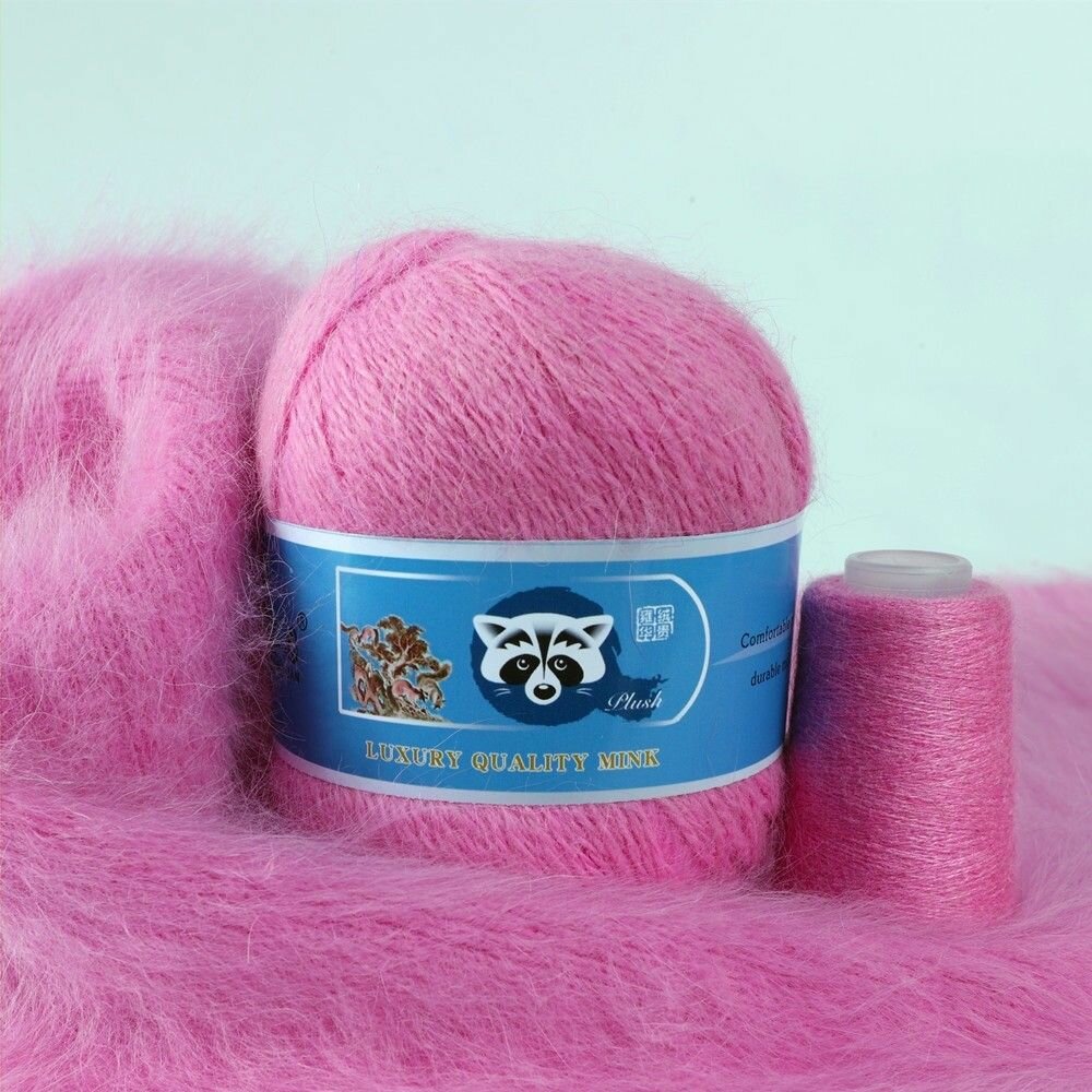 Отзывы на Пряжа Пух норки - 5 мотков 50гр/350м + 5 мотков добавочной нити, цвет 849 амарантово-розовый , синяя этикетка