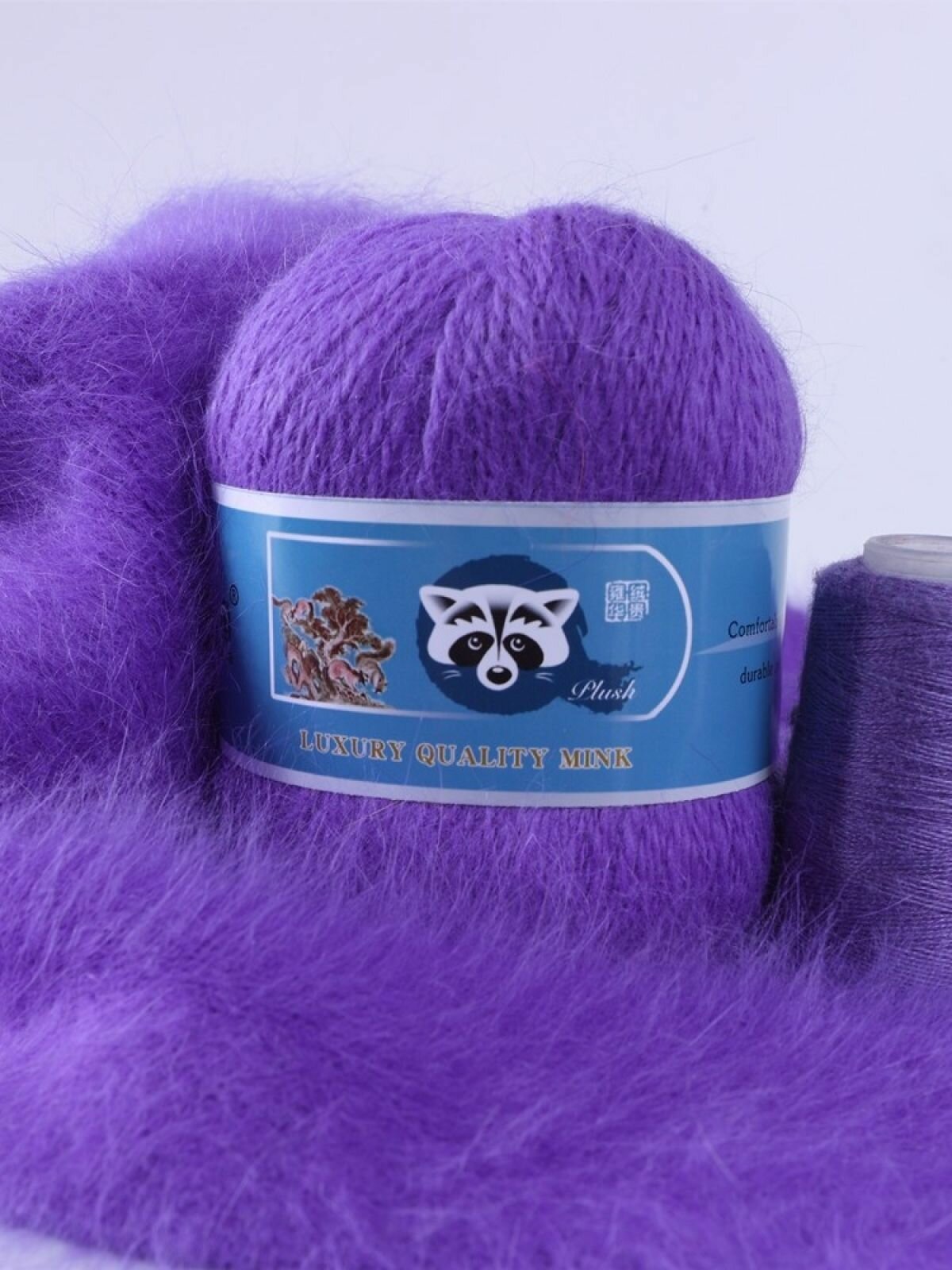 Пряжа Пух норки - 5 мотков 50гр/350м + 5 мотков добавочной нити, цвет 875 фиалка , синяя этикетка информация: