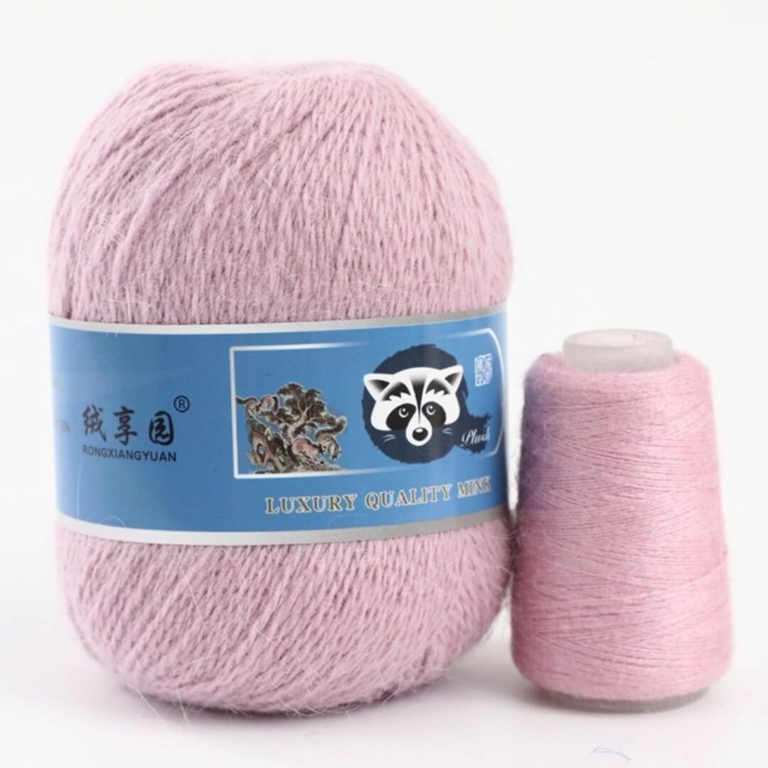 Отзывы на Пряжа Пух норки - 5 мотков 50гр/350м + 5 мотков добавочной нити, цвет 904 пудра , синяя этикетка