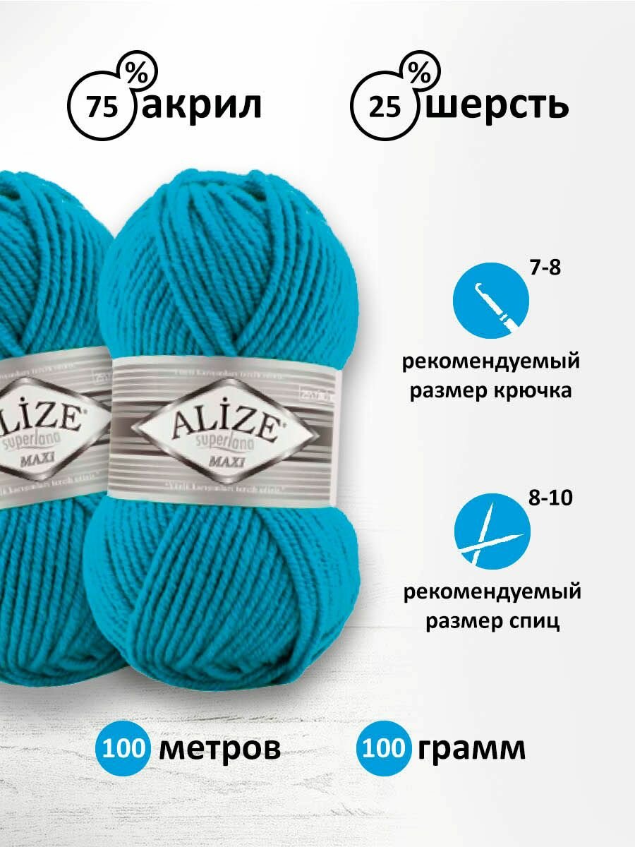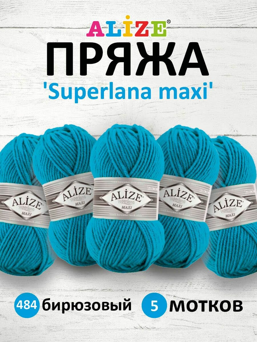 Пряжа для вязания ALIZE 'Superlana maxi', 100г, 100м (75% акрил, 25% шерсть), ТУ (484 бирюзовый), 5 мотков информация: