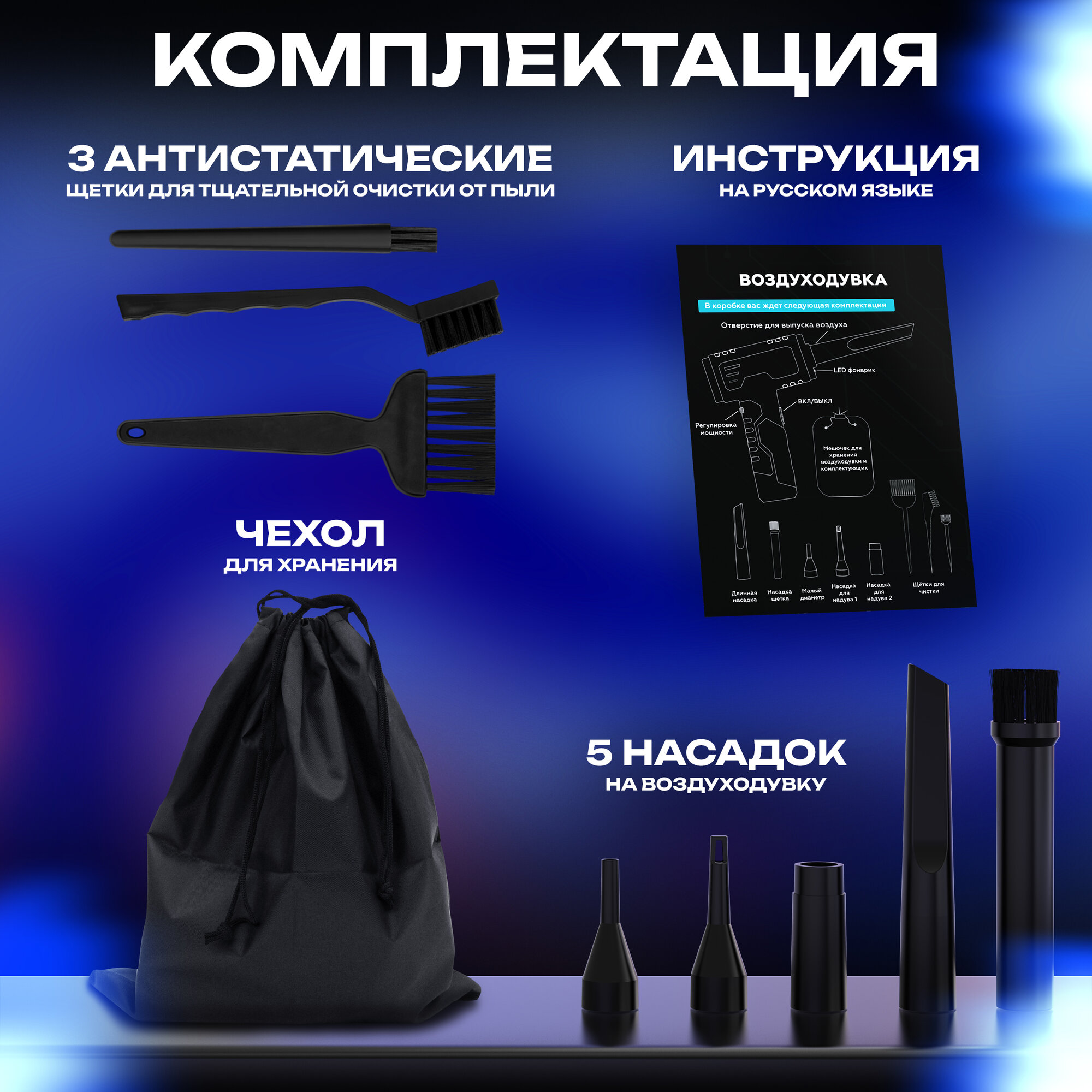 Сверхмощная воздуходувка для компьютера/электроники. Аккумуляторная, 51000об./мин, 68Вт