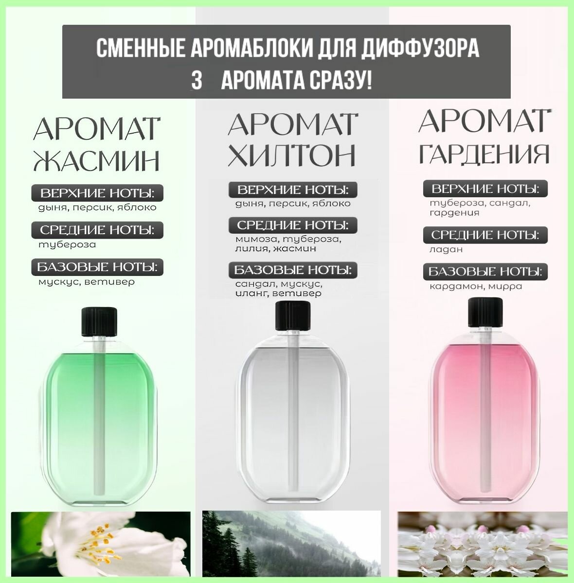 Духи для дома, 3 сменных аромаблока для аромадиффузера Жасмин, Гардения, Шангрила 760 ₽