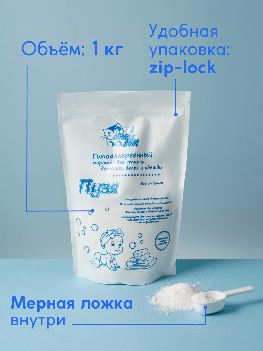 Отзывы на Гипоаллергенный порошок милин ДОМ для стирки детского белья и одежды «Пузя» 1 кг. (зиплок пакет)