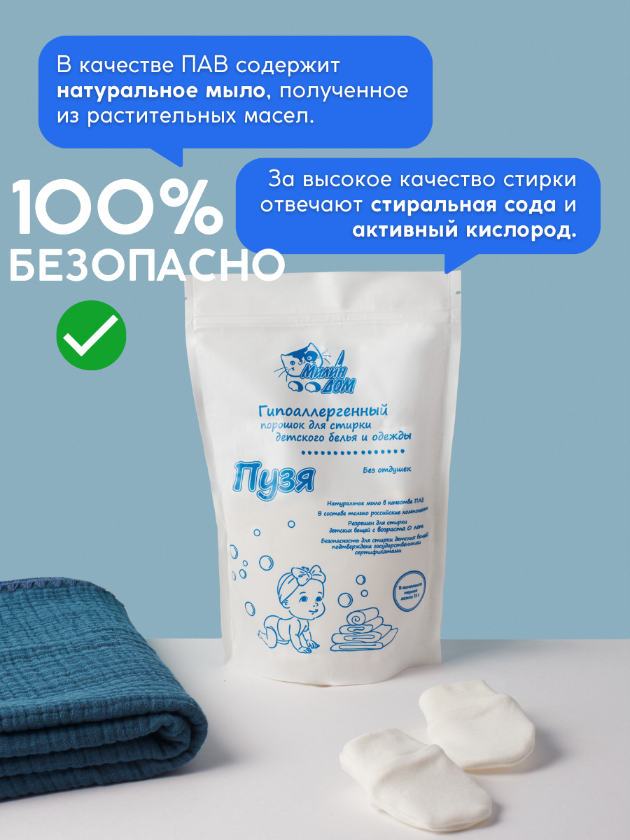 10 цен на Гипоаллергенный порошок милин ДОМ для стирки детского белья и одежды «Пузя» 1 кг. (зиплок пакет)