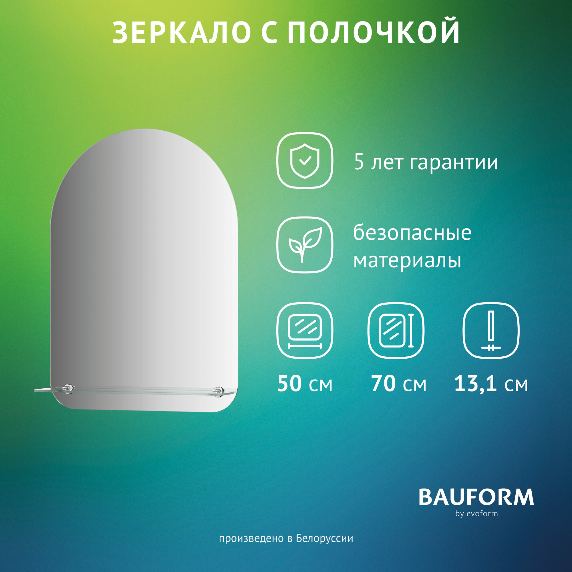 Отзывы на Зеркало настенное с полочкой Арка SHELF EDGE BAUFORM 50х70 см, для гостиной, прихожей, спальни, кабинета и ванной комнаты, SP 9490