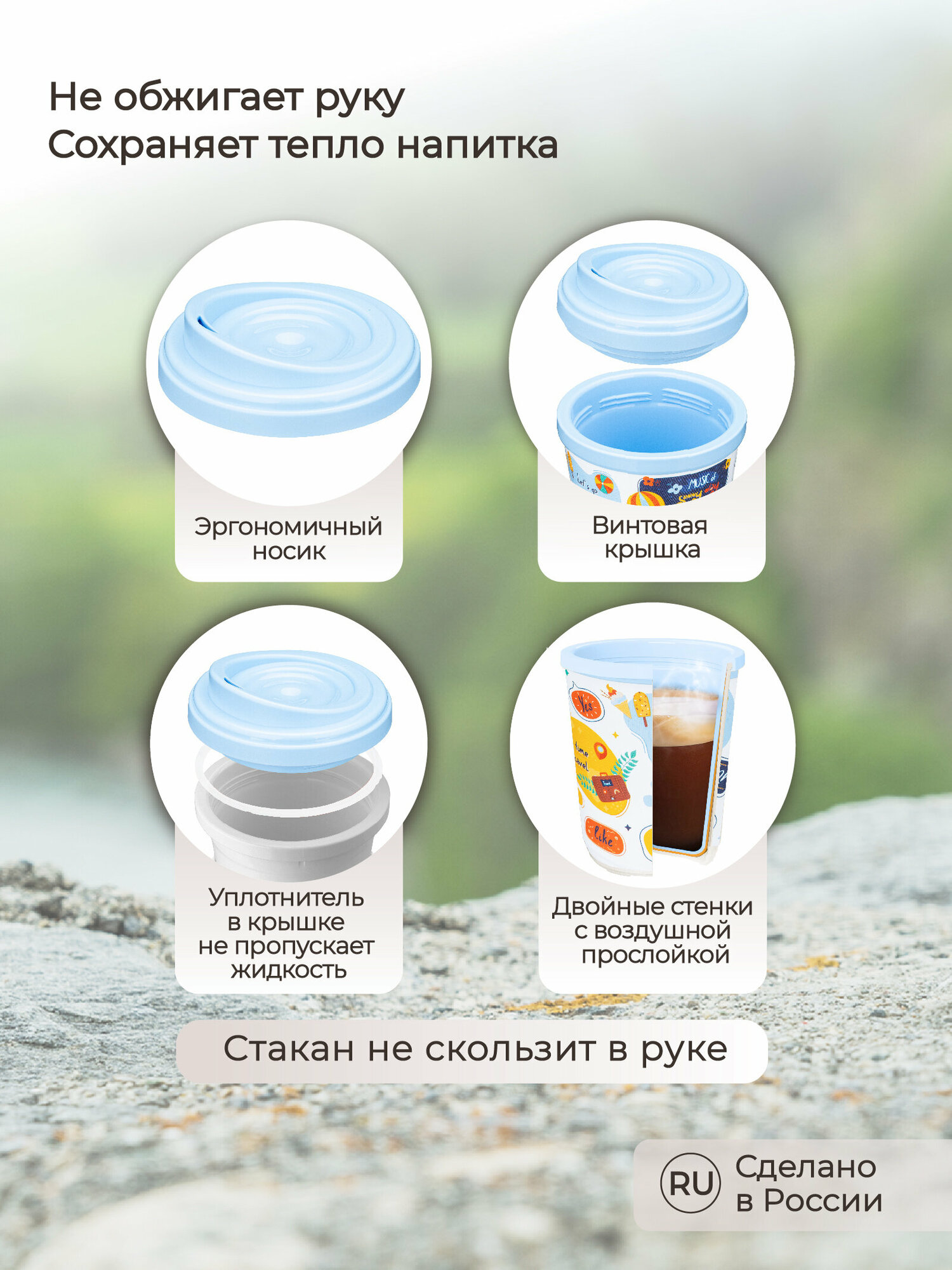 10 цен на Термостакан для напитков, кофе, чая с декором "Стикеры", 300 мл, голубой