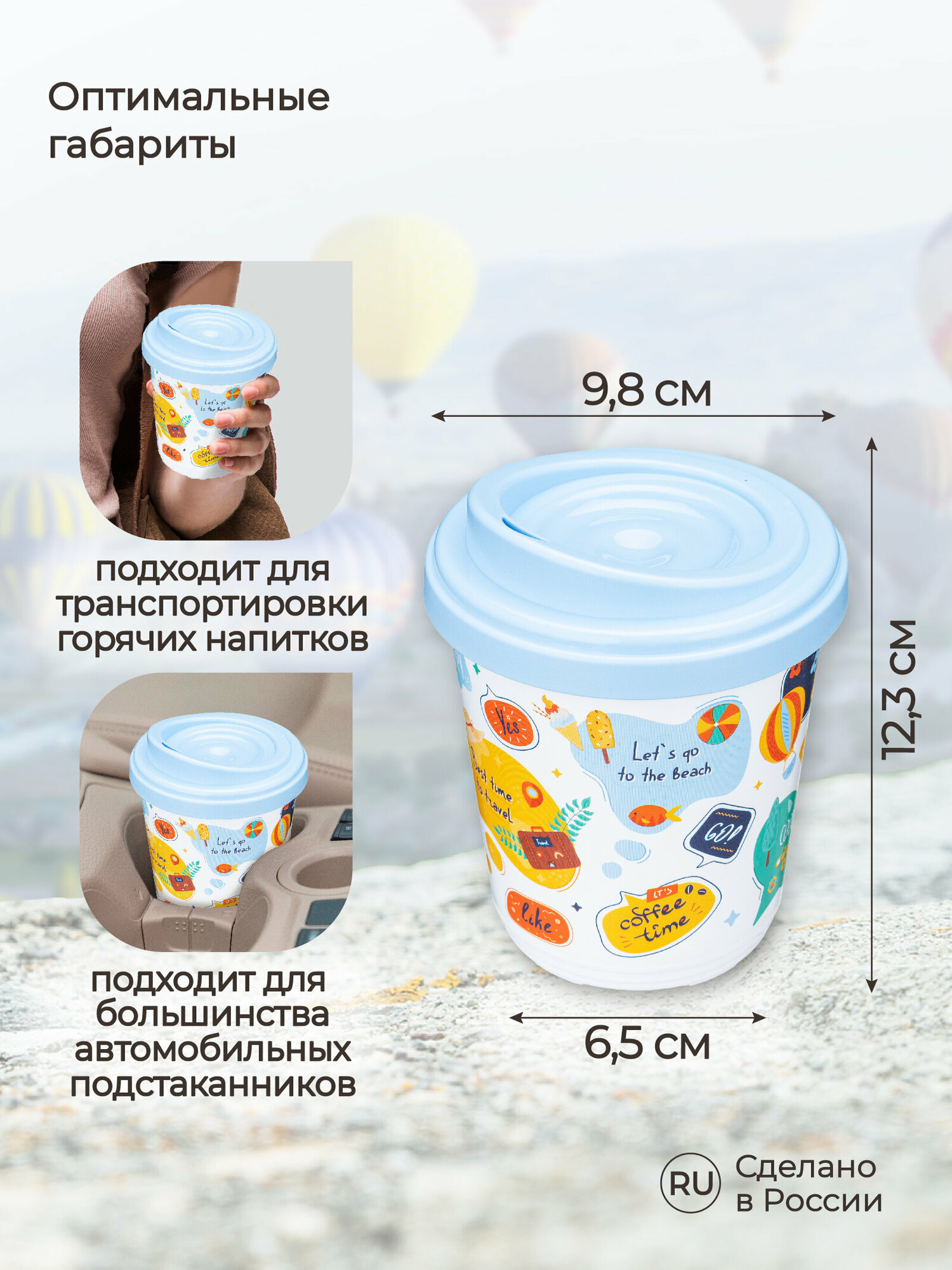 Термостакан для напитков, кофе, чая с декором "Стикеры", 300 мл, голубой информация: