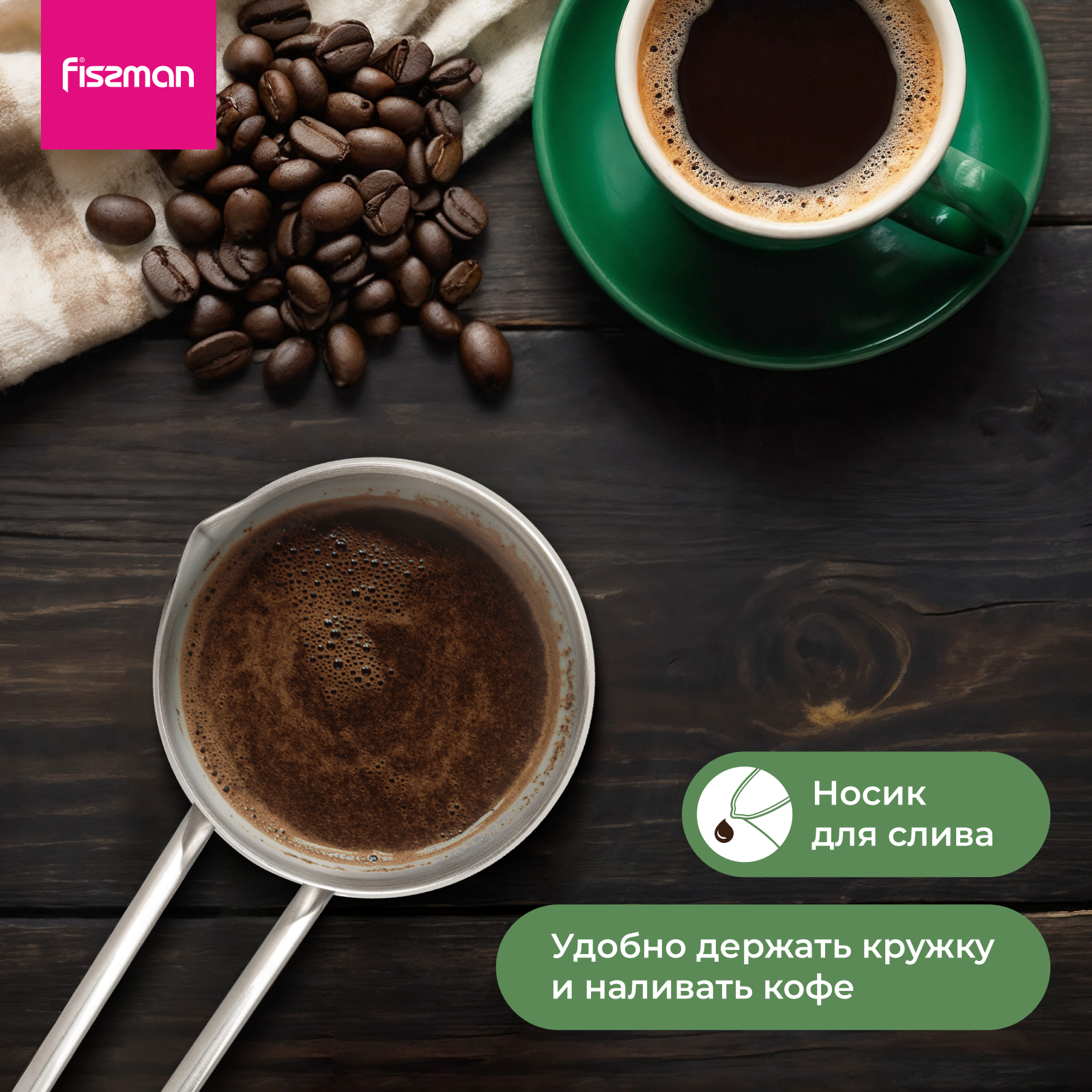 Турка для варки кофе FISSMAN 580 мл с индукционным дном