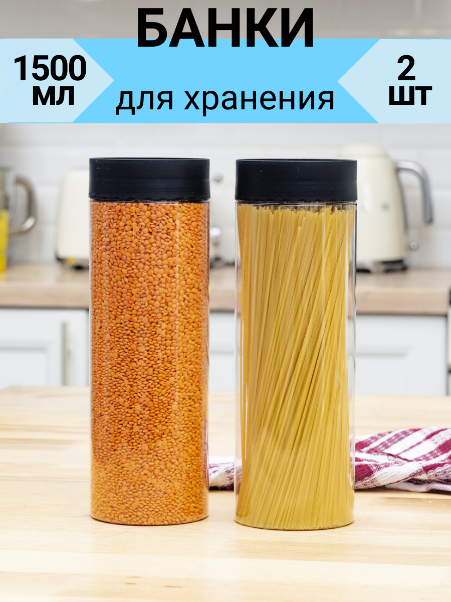 Банки для хранения сыпучих продуктов 1,5 л., 2 шт., пластиковые, прозрачные информация: