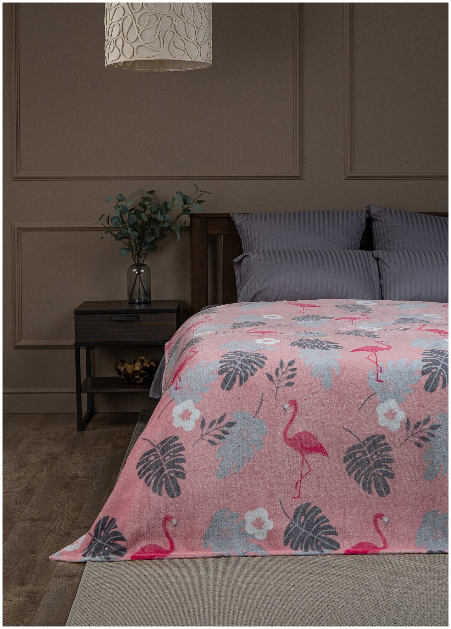 Плед TexRepublic Absolute Фламинго 150х200 1,5 спальный, покрывало на диван фланель мягкий розовый, серый информация: