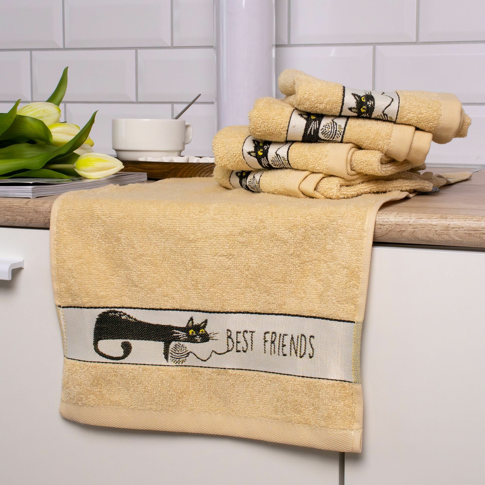 10 цен на Полотенца махровые кухонные - 5 шт, 30х60 см, Китчен, кошка / экрю