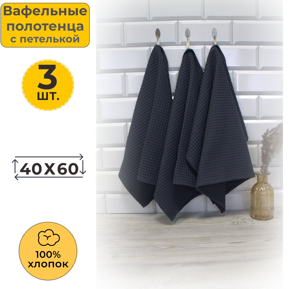 Отзывы на Полотенце кухонное вафельное набор 3 шт. 40x60 с петелькой Вотекс Графит 987
