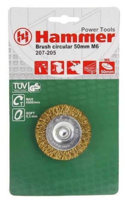 Кордщетка Hammer "Flex 207-205", радиальная, гофрированная, мягкая, с хвостовиком, диаметр 50 мм, М6 информация: