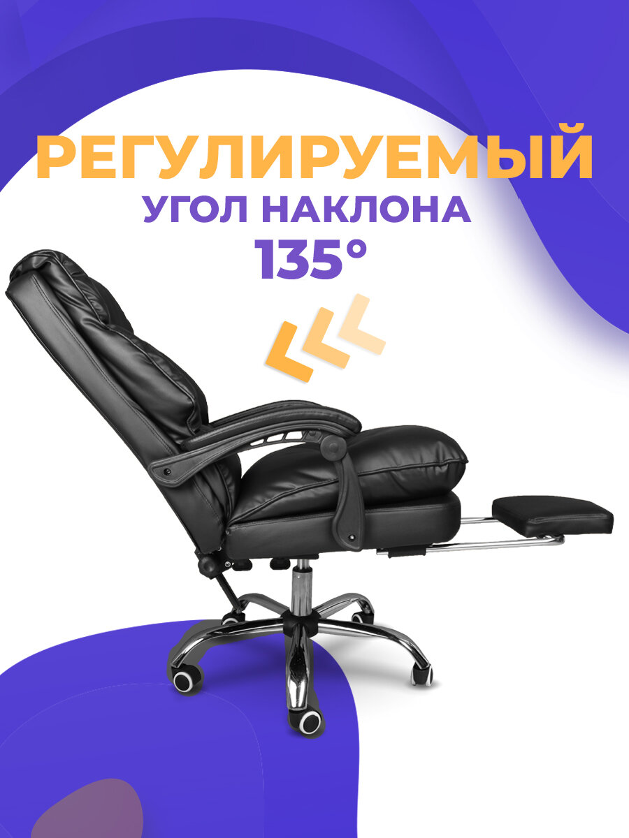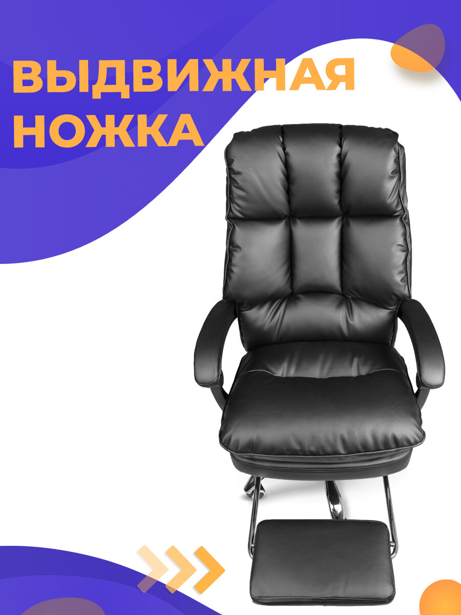 "Кресло для дома и работы" - мягкое компьютерное кресло с подставкой под ноги из экокожи, цвет черный информация: