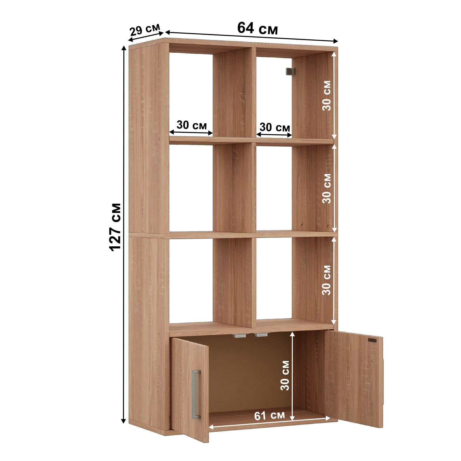 Стеллаж Quatrro 8 секций с дверками Дуб сонома 642х1268х292 информация: