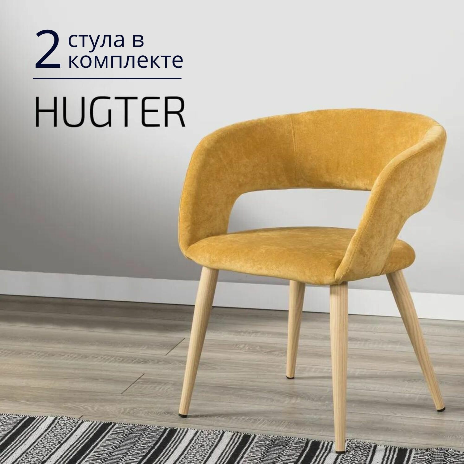 Отзывы на Комплект премиум стульев для кухни 2 шт, стул для кухни обеденный со спинкой Hugter Желтый + Ножки Дуб
