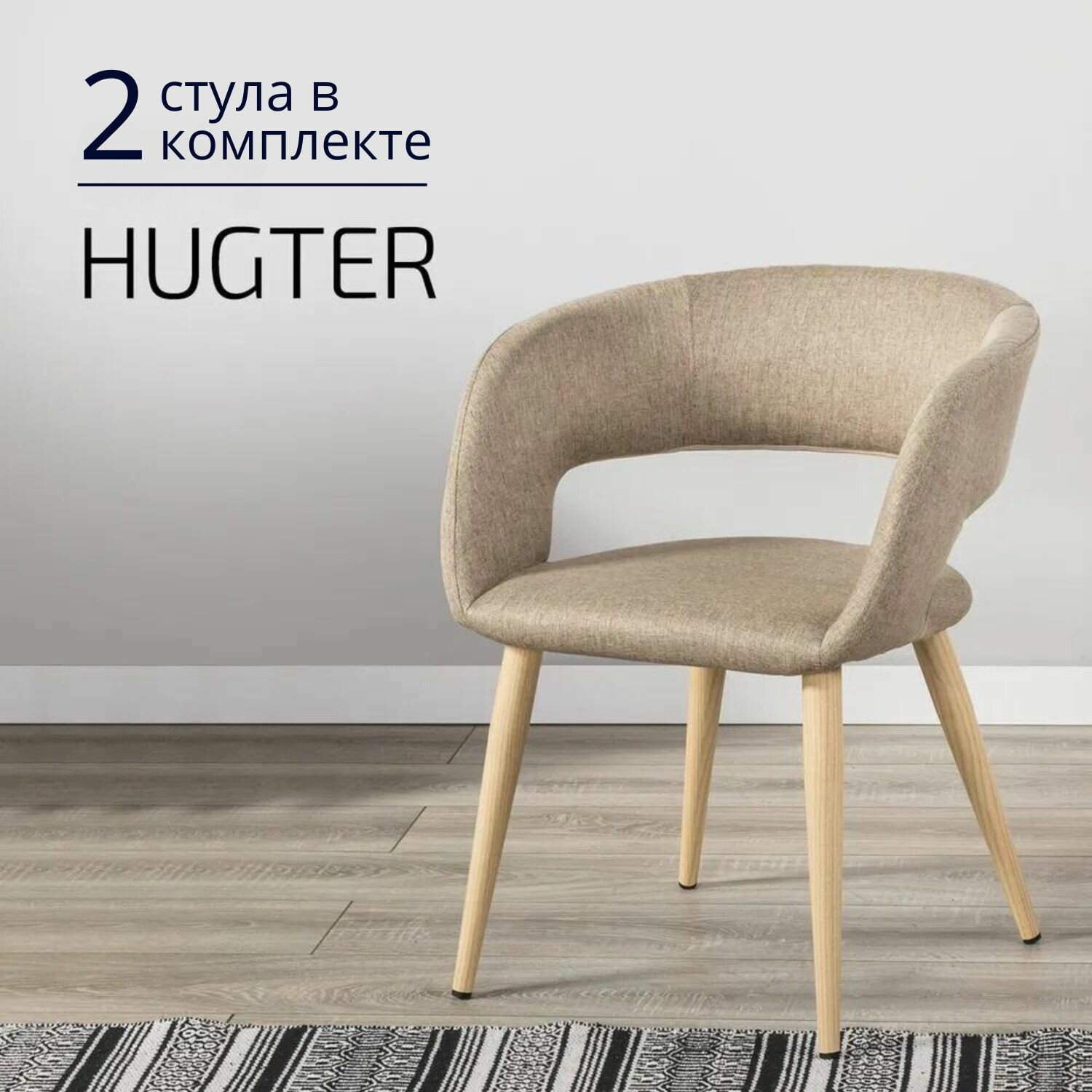 Комплект премиум стульев для кухни 2 шт, стул для кухни обеденный со спинкой Hugter Бежевый + Ножки Дуб информация: