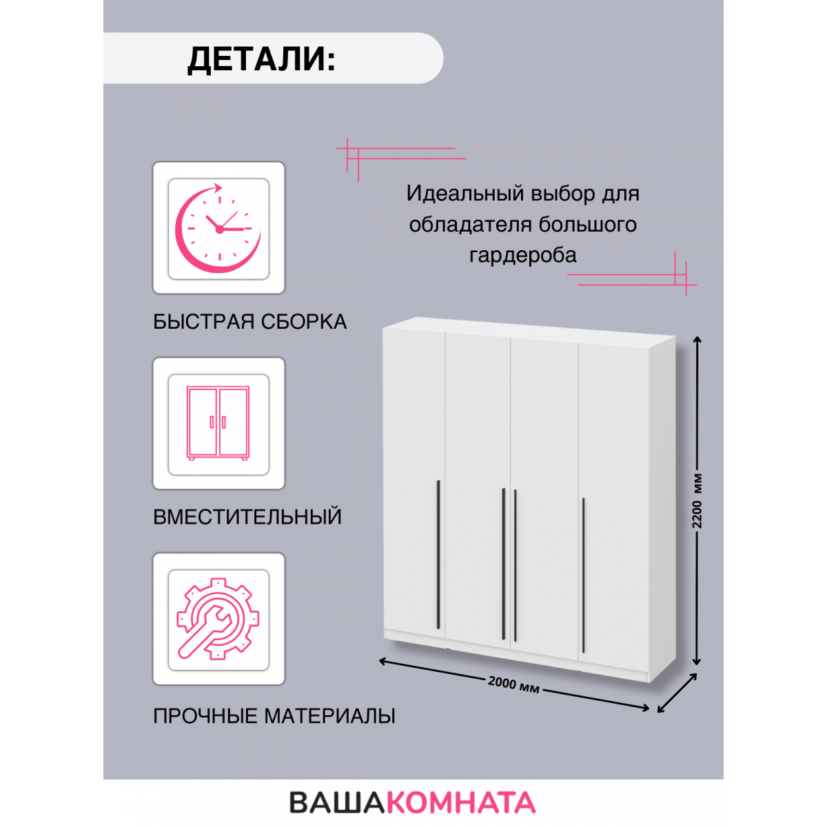 | Комплектация | четырехстворчатый распашной шкаф, инструкция по сборке |