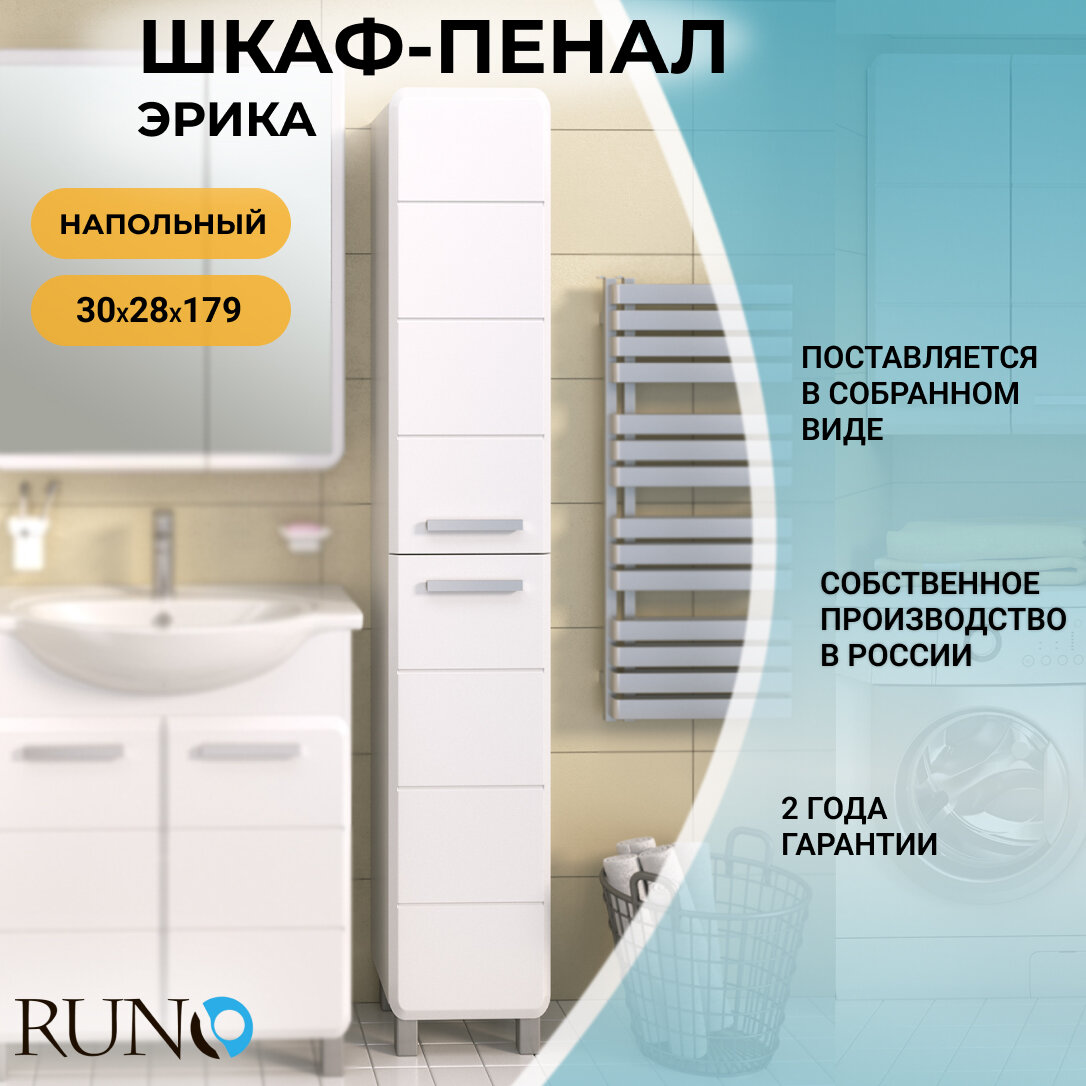 Шкаф в ванную пенал напольный Runo / Эрика 30, универсальный 12 920 ₽
