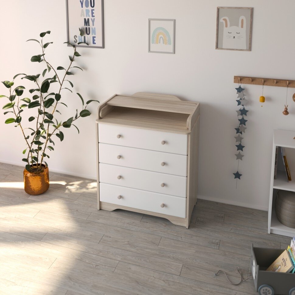 Пеленальный комод Malika Kristoff 804 - шимо светлый, белый 14 887 ₽