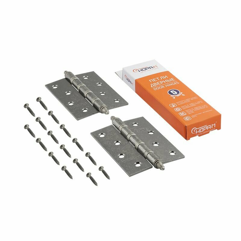 Петли дверные 2 шт. Нора-М 4"-4ВВ универсальные (100х75х2,5) - Застаренное серебро информация: