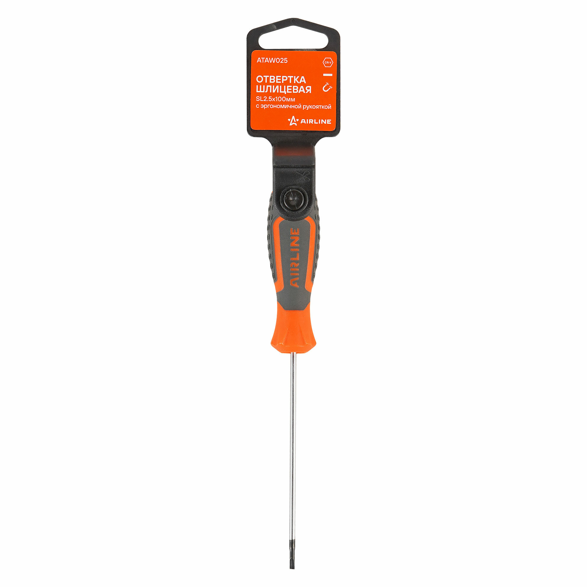 10 цен на Отвертка шлицевая Airline SL2.5x100 мм с эргономичной рукояткой магнитная, ATAW025