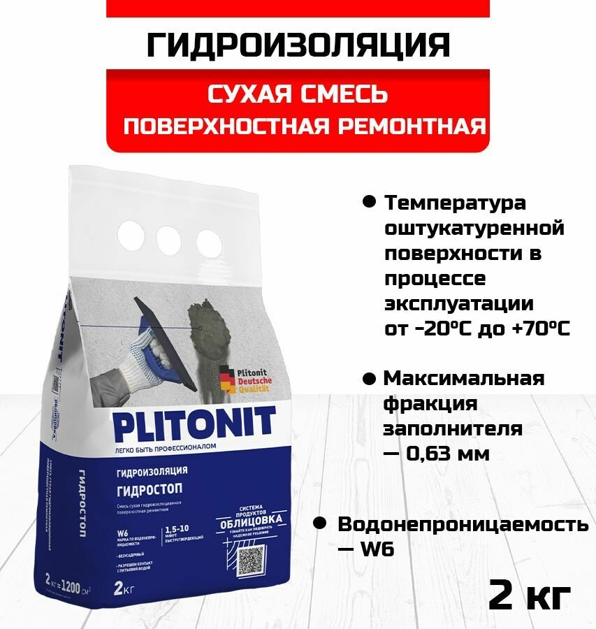 Гидроизоляция PLITONIT Гидростоп 2кг информация: