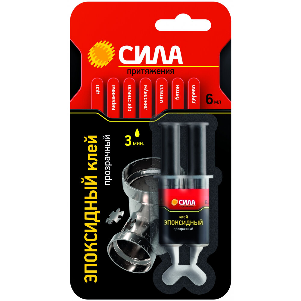 Клей эпоксидный бытовой сила SEBL1-6 универсальный прозрачный для металла, пластика, для дерева, для резины, для бетона 6 мл информация: