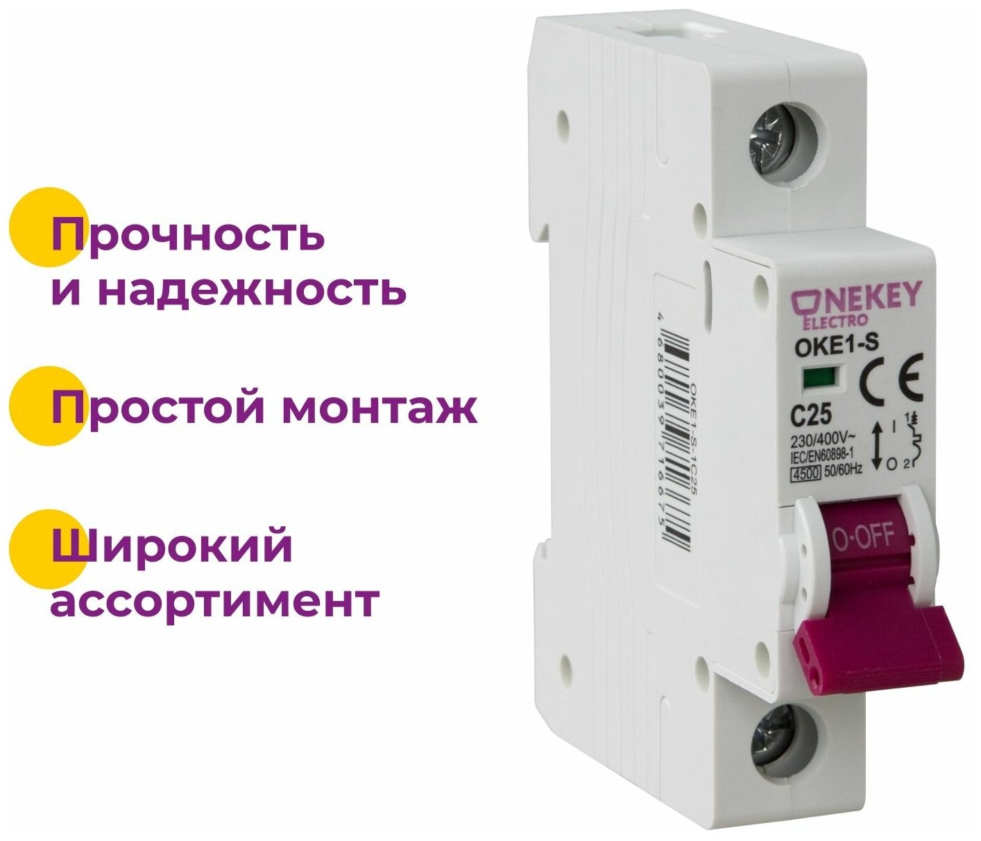 Отзывы на Автоматический выключатель OneKeyElectro 1P, 4.5kA, C-25A, 1M.