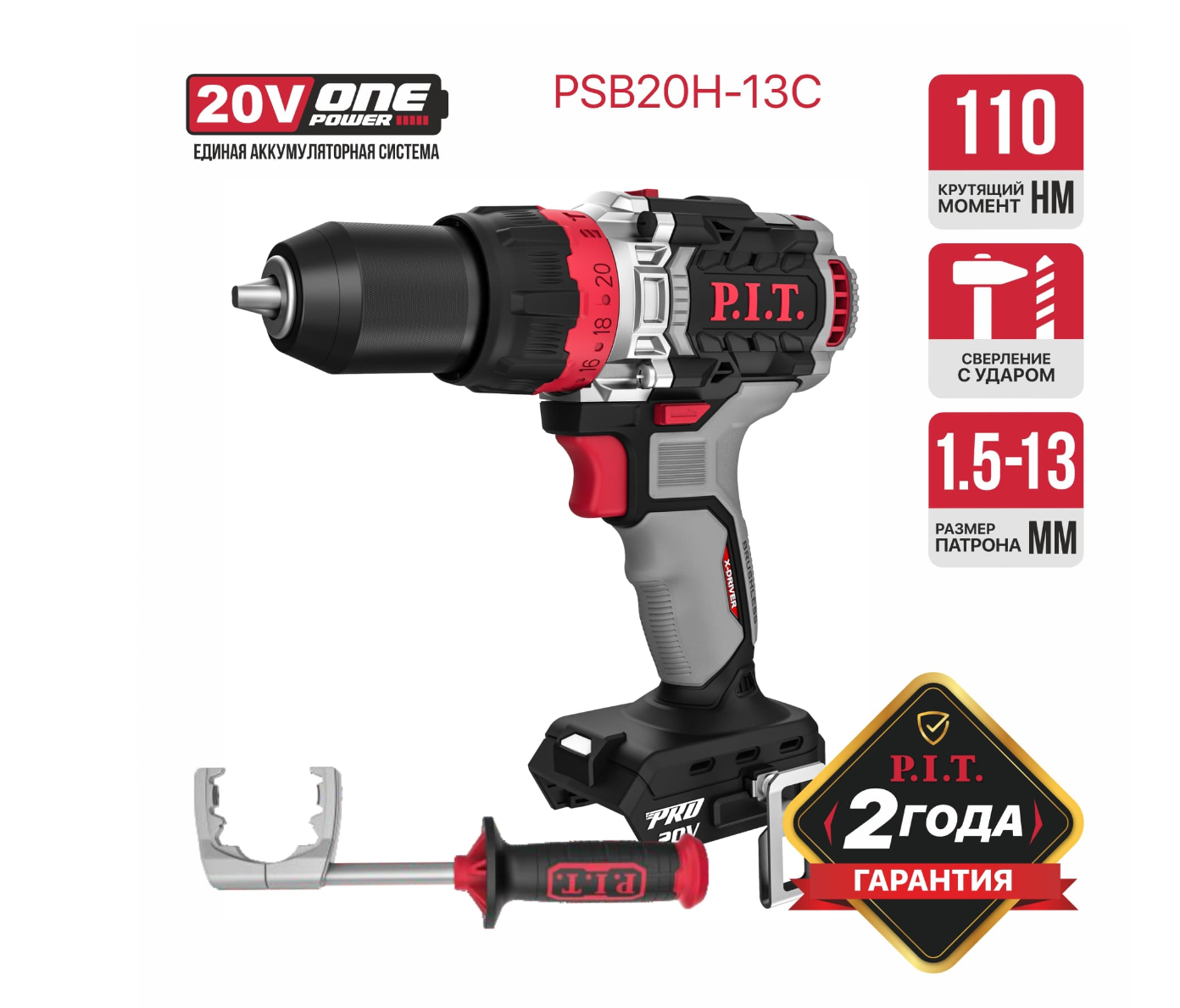 Отзывы на Дрель ударная аккум. бесщёточная P.I.T. PSB20H-13C X-DRIVER SOLO (20В, 110Нм, мет патрон 13мм, 2ск)