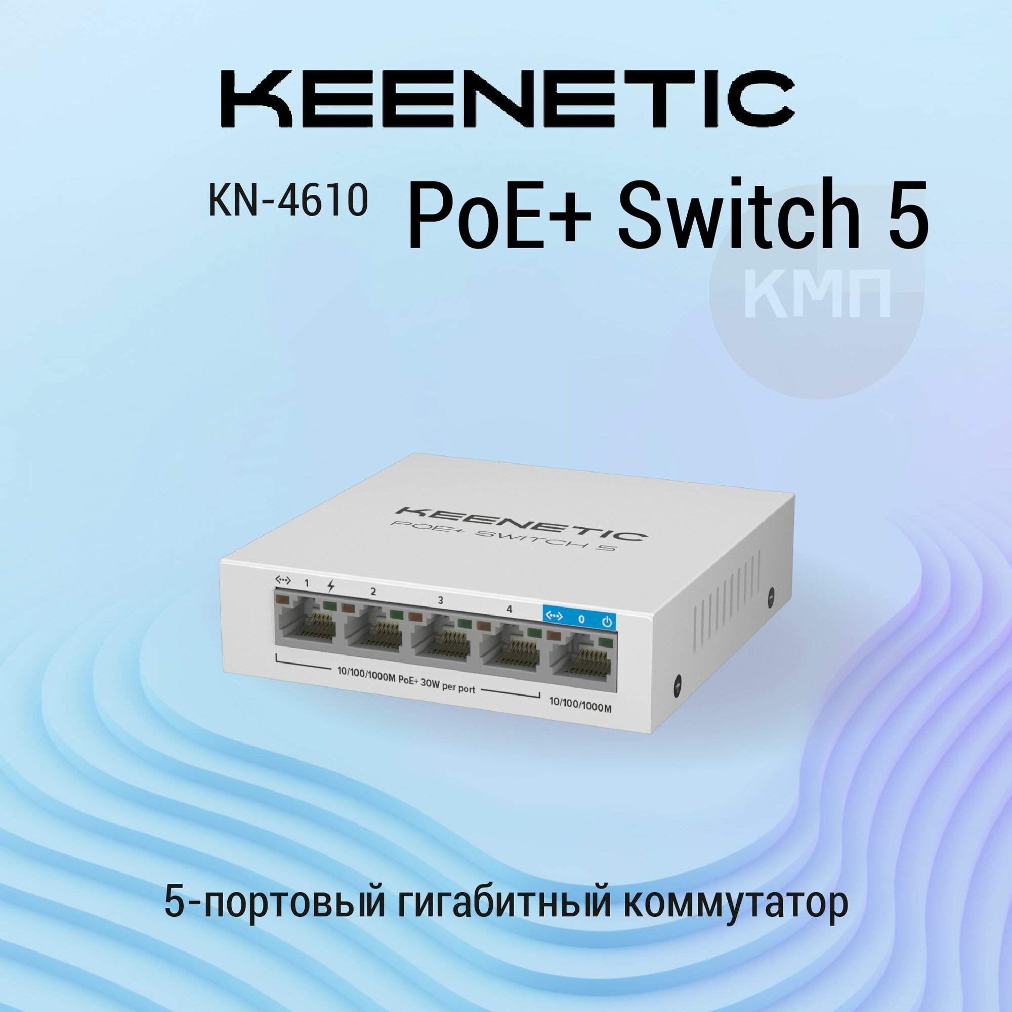 Гигабитный коммутатор Keenetic Switch 5 KN-4610 5-портовый, с 4 портами PoE+ информация: