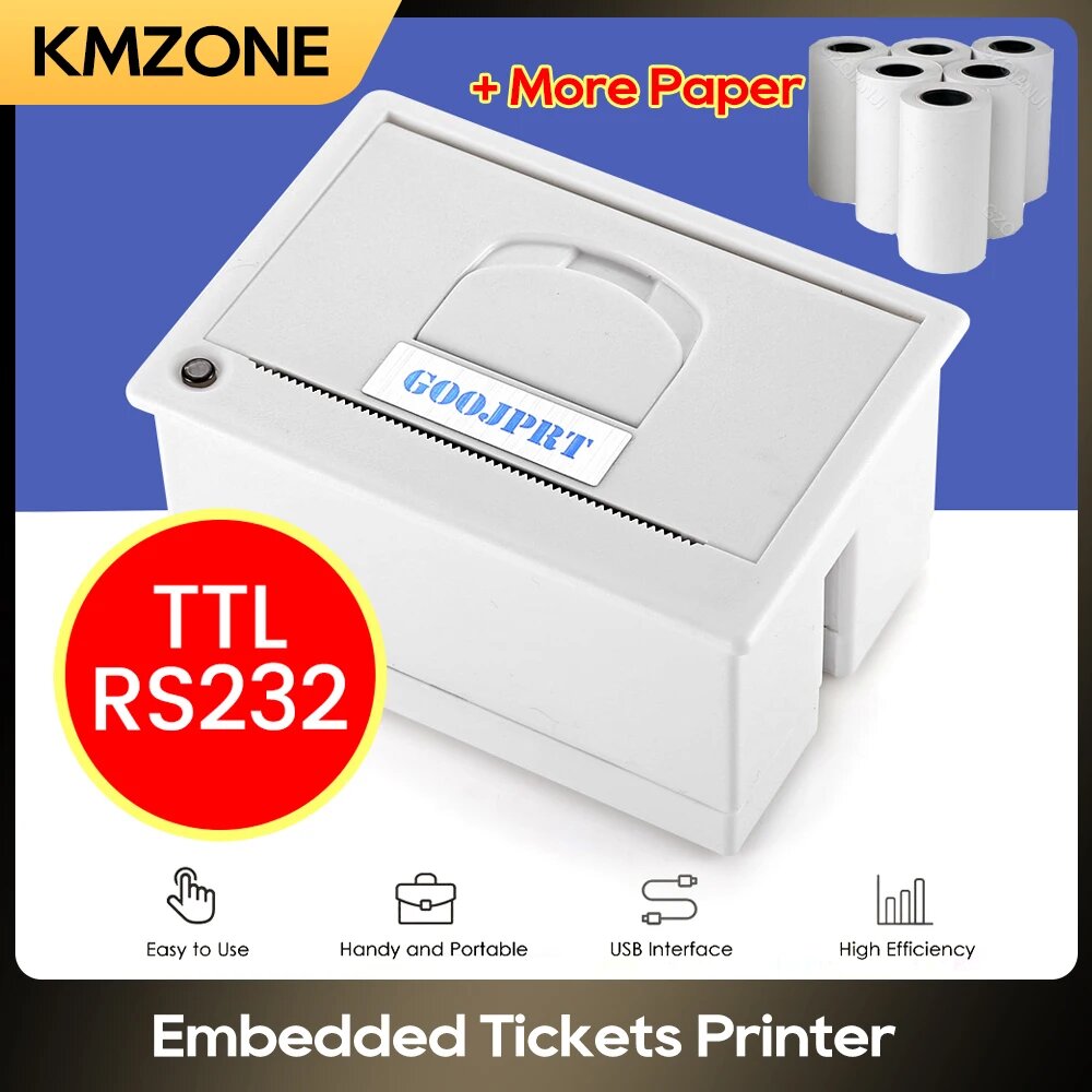 10 цен на Мини-встроенный термопринтер GOJPRT QR204 58 мм, White RS232 6Rolls
